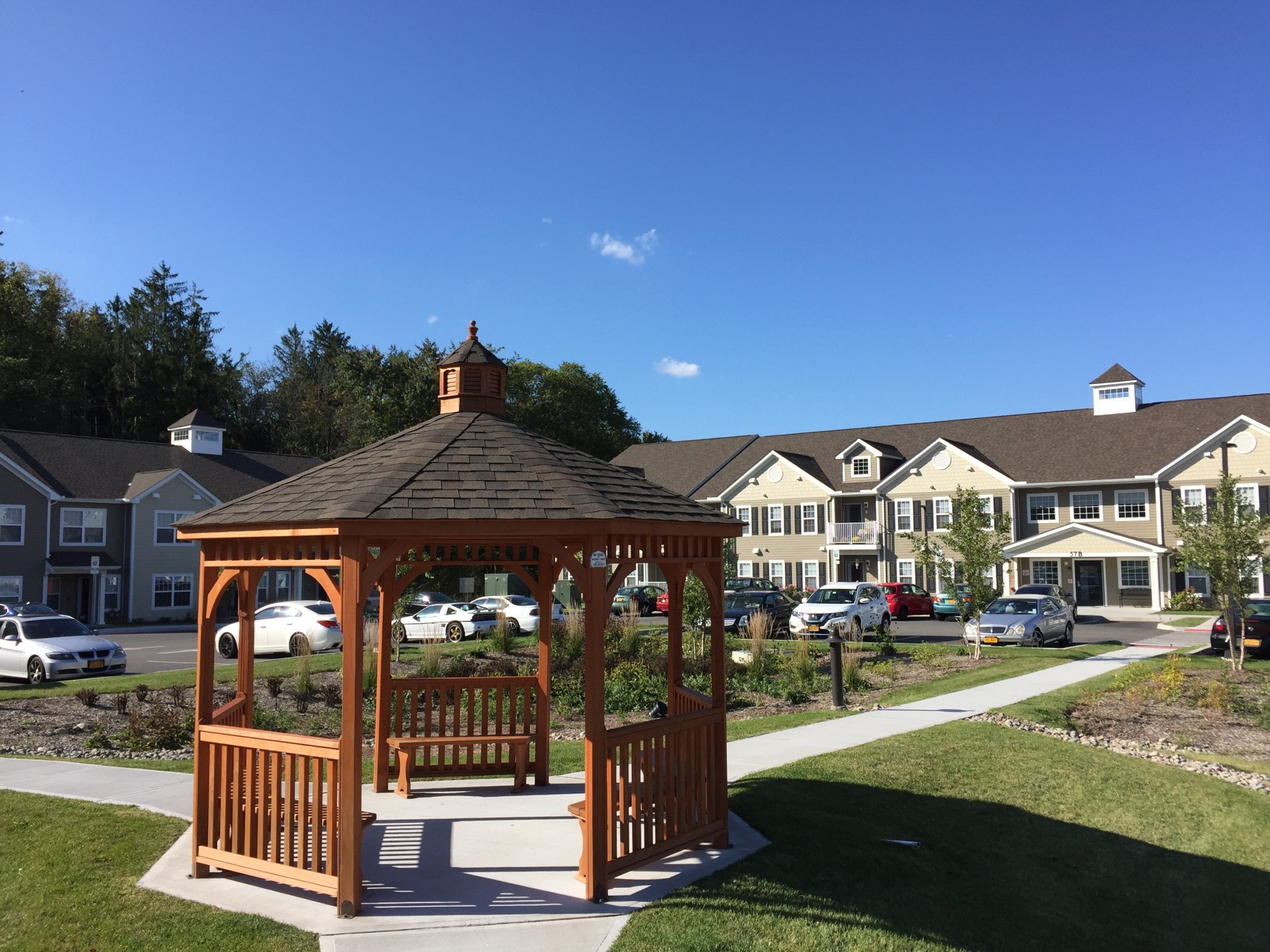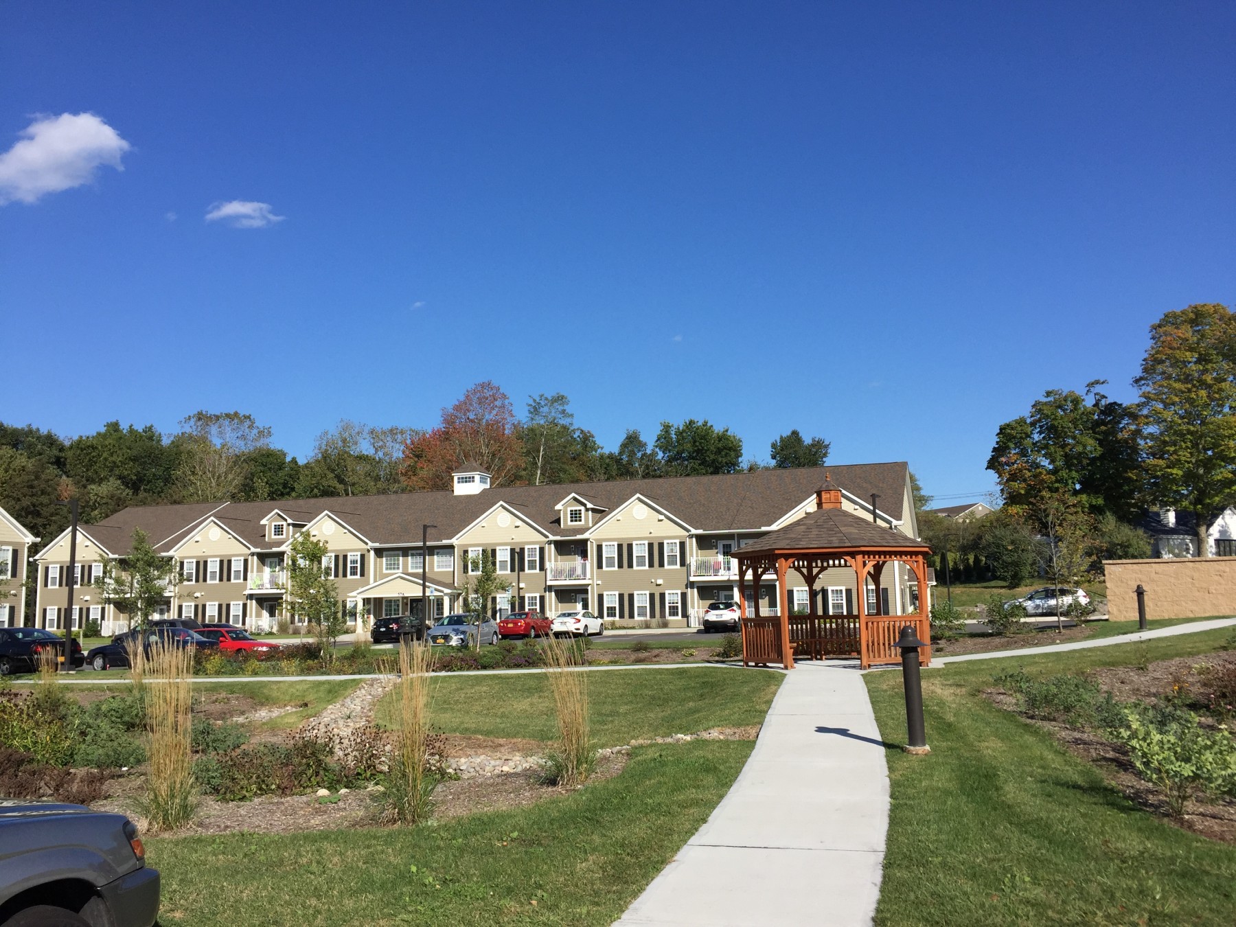 Crossroads at Baldwin Place is a mixed-income and intergenerational housing development located on Route 6 in Somers, New York. Crossroads is comprised of 52 affordable senior apartments, 55 and older, 10 mixed-income apartments for families, and 2 market-rate apartments. Crossroads is conveniently located near the Baldwin Place Shopping Center, which offers numerous shopping options. Crossroads’ site has been designed with meandering walkways and rain gardens complete with a central gazebo. All the apartments are energy efficient and have received a Gold LEED rating.